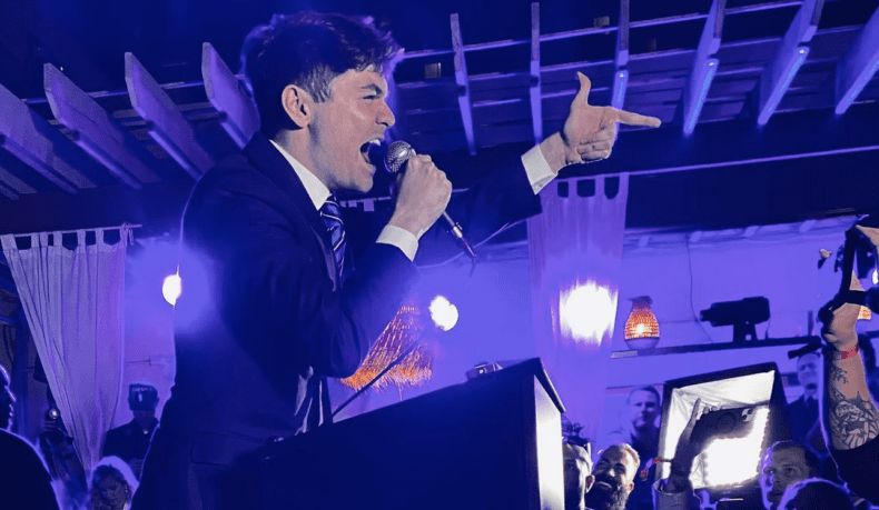 Amidst the chaos of an ill-planned event, Fuentes (above) and a coterie of followers and “VIPs” were booted out of three venues. Along the way, Fuentes made clear his current strategy is not “America First,” but “antisemitism first” – a move befitting longtime neo-Nazi David Duke’s appearance in the Motor City to sing Fuentes’ praise.