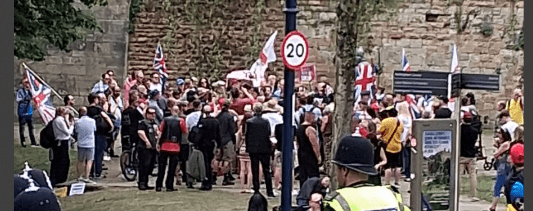 Gathering from 11.30am, anti-fascists from a huge range of organisations, including drum corps, came to Nottingham Castle in true English style, to oppose thuggery, bullying and bigotry.