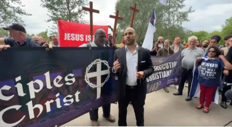 He has been at the forefront of a number of incidents at Speakers Corner, in London, where gangs waving crosses and chanting “Christ is King” have aggressively confronted Muslim speakers.